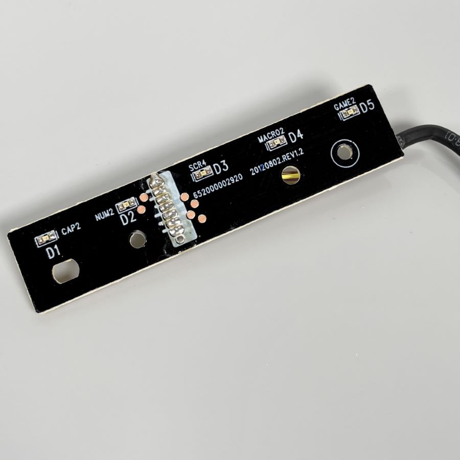Diese Platine ist für die LED Anzeige für folgende Modi zuständig: CAPS, NUM, SCR, Macro und Gaming-Modus.