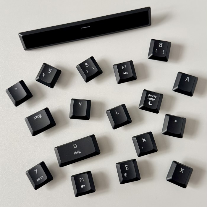 - Metallstützen inkl. bei den größeren Tasten (z. B. Enter, Ziffernblock 0 ...)